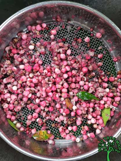 Fruit & Seed Description: Fruits are a white-purple, round berry with a circular rim from the persistent calyx at the top. Contains a single seed.