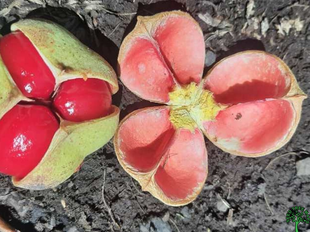 Fruit & Seed Description: Fruit is a yellow-brown capsule, splitting open when mature to reveal 1-3 seeds covered with a fleshy red aril.