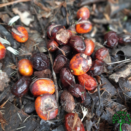 Fruit & Seed Description: Fruit is an orange-red, round-oval drupe with a hard stone. Contains 1-2 pointed seeds.