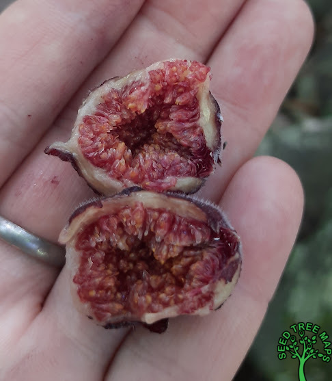 Fruit & Seed Description: Fig (multiple fruit) is purple-black when mature, oval, densely hairy with a crown of bristles, containing numerous fruits (achenes) each containing a single seed. Edible when mature.