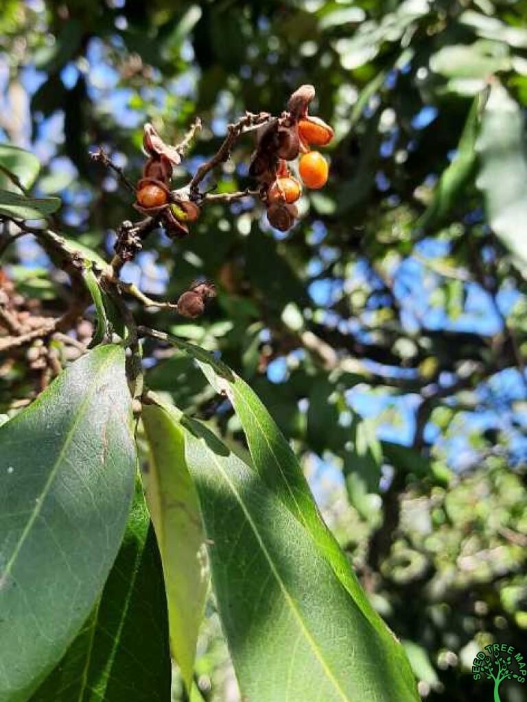 Fruit & Seed Description: Fruit is an orange-brown heart-shaped capsule, with 2 black seeds covered by fleshy yellow arils.