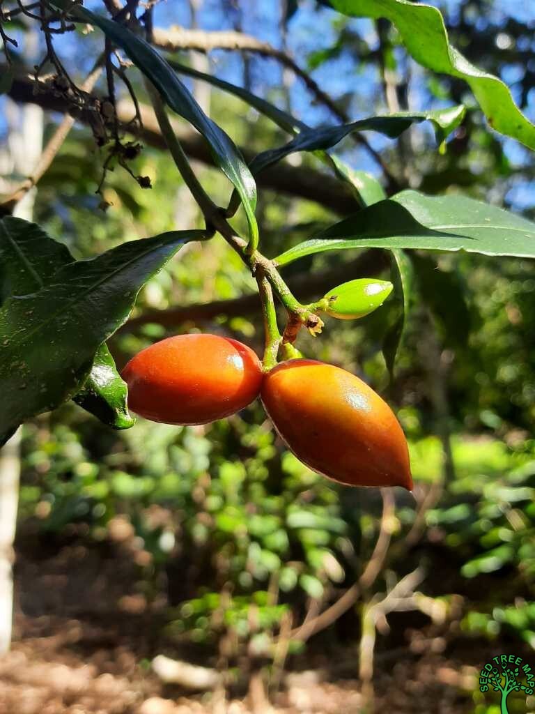 Fruit & Seed Description: Fruit occurs in joined pairs of bright red drupes, each containing one seed. Both fruit and seed have longitudinal grooves.